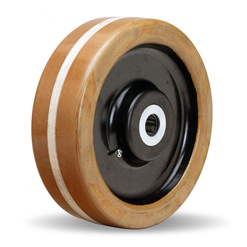 Realizzata con mozzo in acciao/ghisa e rivestimento in vulkollan bayer 92sha/vulkotech 92sha. Per il dimensionamento e il calcolo della struttura e del rivestimento delle ruote occorre tener conto di portata (carico da movimentare + peso carrello), velocità di lavoro (m/sec), accelerazioni, decelerazioni, frenate, distribuzione del carico (in asse o a sbalzo), ore di lavoro giornaliere e temperatura d’esercizio (°c) per queste particolari applicazioni le ruote vengono realizzate su disegno del cliente, il quale può avvalersi per la progettazione della consulenza del nostro servizio tecnico.